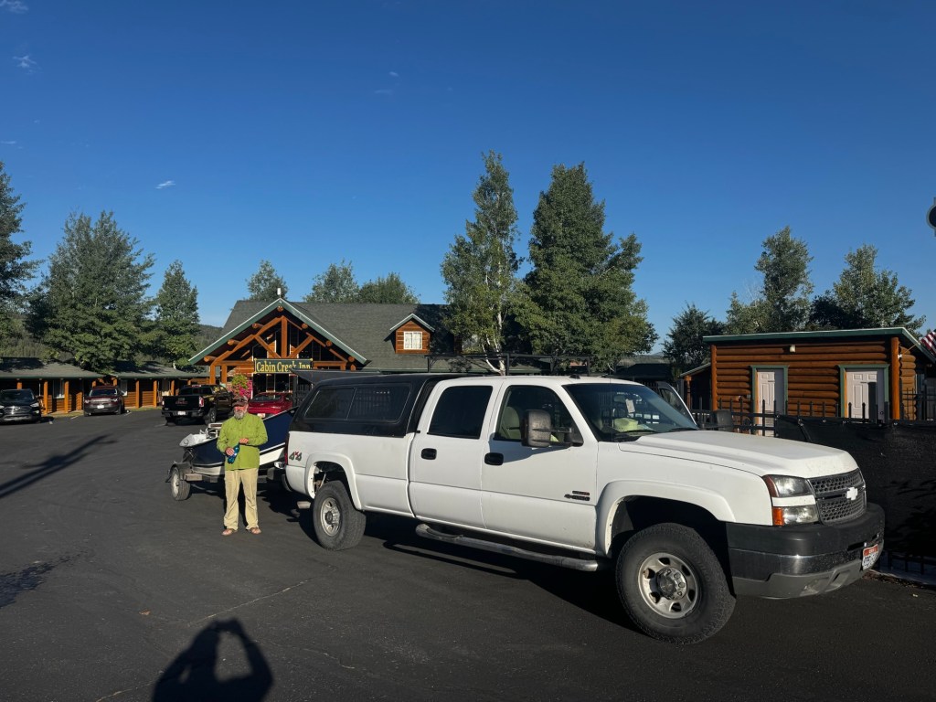 I woke up about 6:00 in the morning needing to piss like a racehorse! After sipping beers for most of the day before, my bladder needed a reprieve. My liver could have used one, too, but it was fine. The hotel had a continental breakfast, but it wasn’t available until 7:00. I jumped in the shower and started to get ready for the day. I usually don’t eat breakfast, but since it was complimentary, Dustin and I figured we would give it a shot. Simple breakfast of pancakes and hot coffee, good enough for me. I enjoyed our stay at Cabin Creek in Thayne, Wyoming. It was clean and friendly. It consists of single log cabins in a horseshoe shape with a pool and main office in the middle. I always prefer to stay in a detached cabin over a hotel where you can hear people walking down the hall, or every time a door closes.